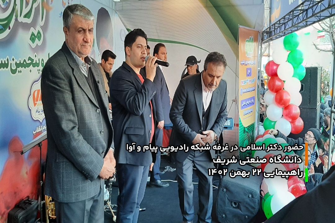 حضور رییس سازمان انرژی اتمی در جایگاه شماره 1رادیو پیام وآوادر راهپیمایی22بهمن