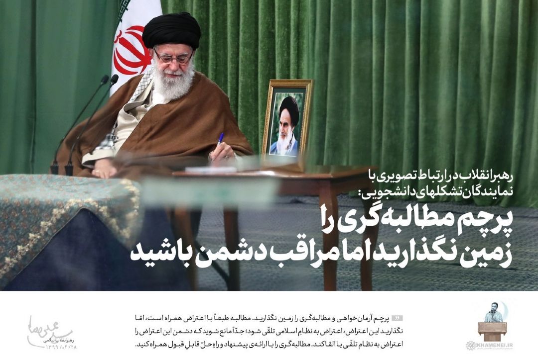 جلسه نمایندگان تشكلهای دانشجویان با رهبر انقلاب این دیدار كه هر سال در ماه رمضان با حضور هزاران نفر از دانشجویان برگزار میشد، امسال به دلیل دستورالعملهای بهداشتی ستاد ملی مبارزه با كرونا مبنی بر عدم برگزاری تجمعات، از طریق ارتباط تصویری برگزار میشود. >5 سال پیش